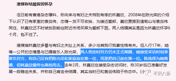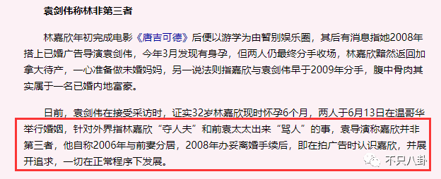 当初有人质疑林嘉欣是“小三”上位,袁剑伟发妻长居北京,林嘉欣趁虚而入,但无论是袁剑伟还是林嘉欣都严词否认这种说法。