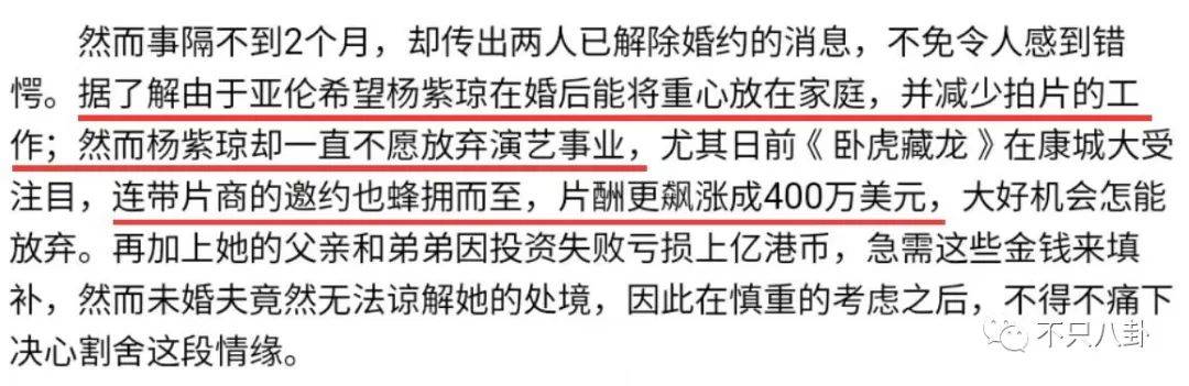 据悉,男方希望杨紫琼婚后将重心放在家庭,少出去拍电影,但杨紫琼怎么可能会放弃自己的演艺事业呢?