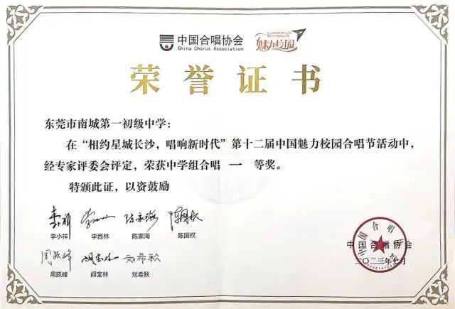南城第一初级中学悦美合唱团捧回中学组一等奖