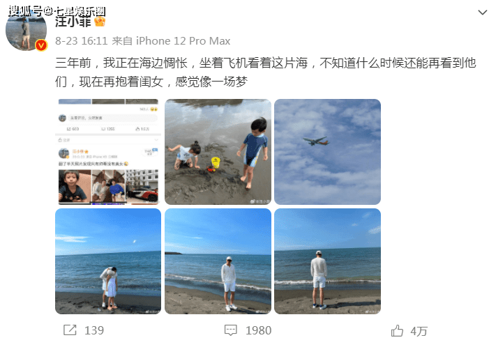 8月23日,汪小菲晒出三年前后的海边对比照,称三年前,他在海边看着这片海,不知道什么时候才能见到他们,三年后,再抱着闺女,感觉像一场梦。