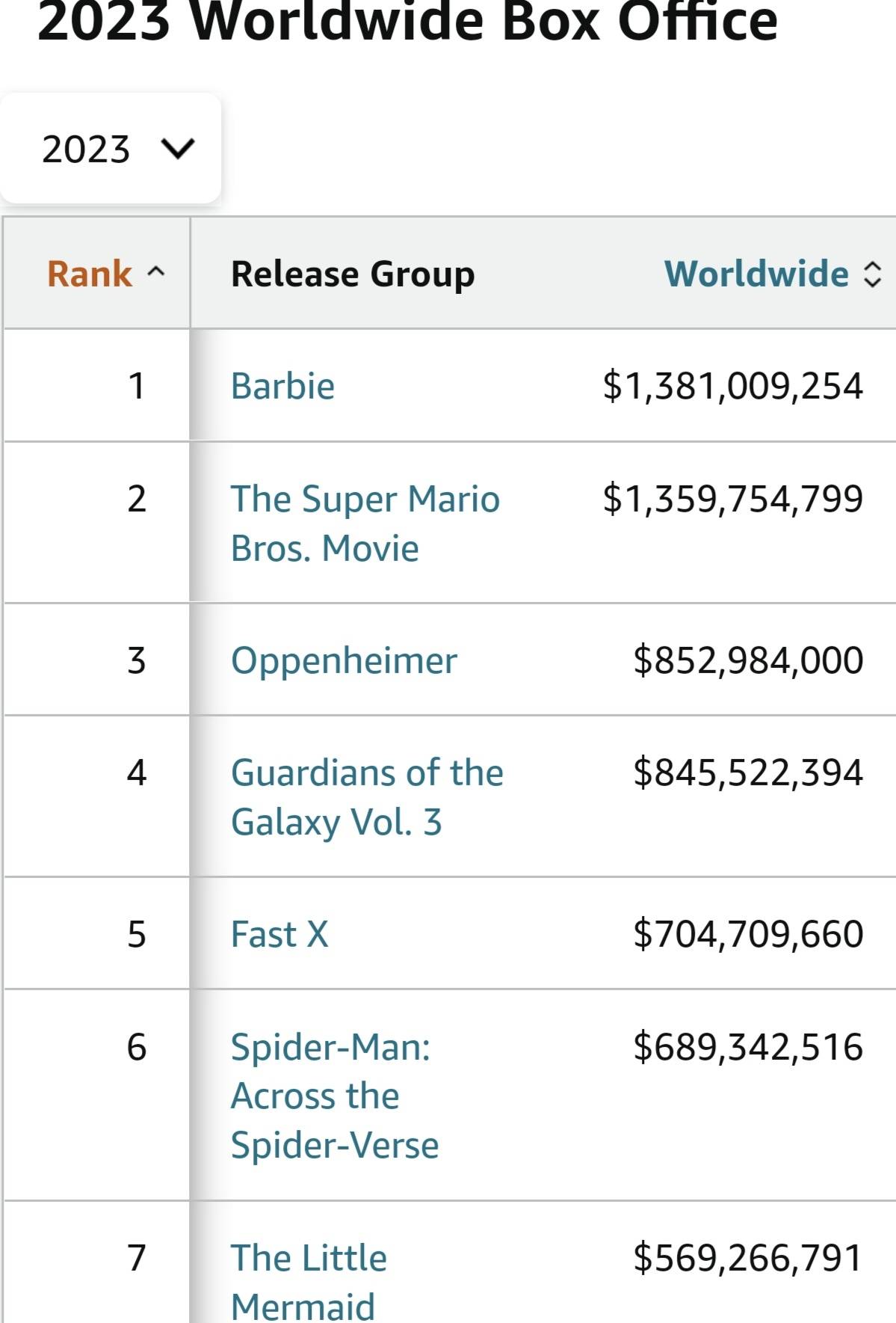该片北美票房3.1亿美元,海外票房5.43亿美元,全球票房累计达到了8.53亿美元,仅次于《芭比》《超级马力欧兄弟大电影》,位居全球年度票房榜第三。相对1亿美元的制作成本,《奥本海默》大赚。