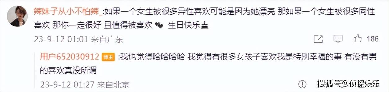 看到周扬青的美照后,有网友留言大赞她“很好,值得被喜欢”。而周扬青也开心回应粉丝,并直言被很多女孩子喜欢是特别幸福的事儿,一句“有没有男的喜欢真没所谓”好帅。