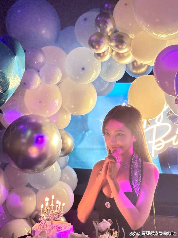 下图里,周扬青双手合十对着生日蛋糕许愿。从晒出的生日现场照可以看到,周扬青的生日派对十分梦幻,众多的生日气球色彩缤纷,配上她的这身辣妹装,以及周遭的环境,当真是梦幻十足,氛围感拉满。