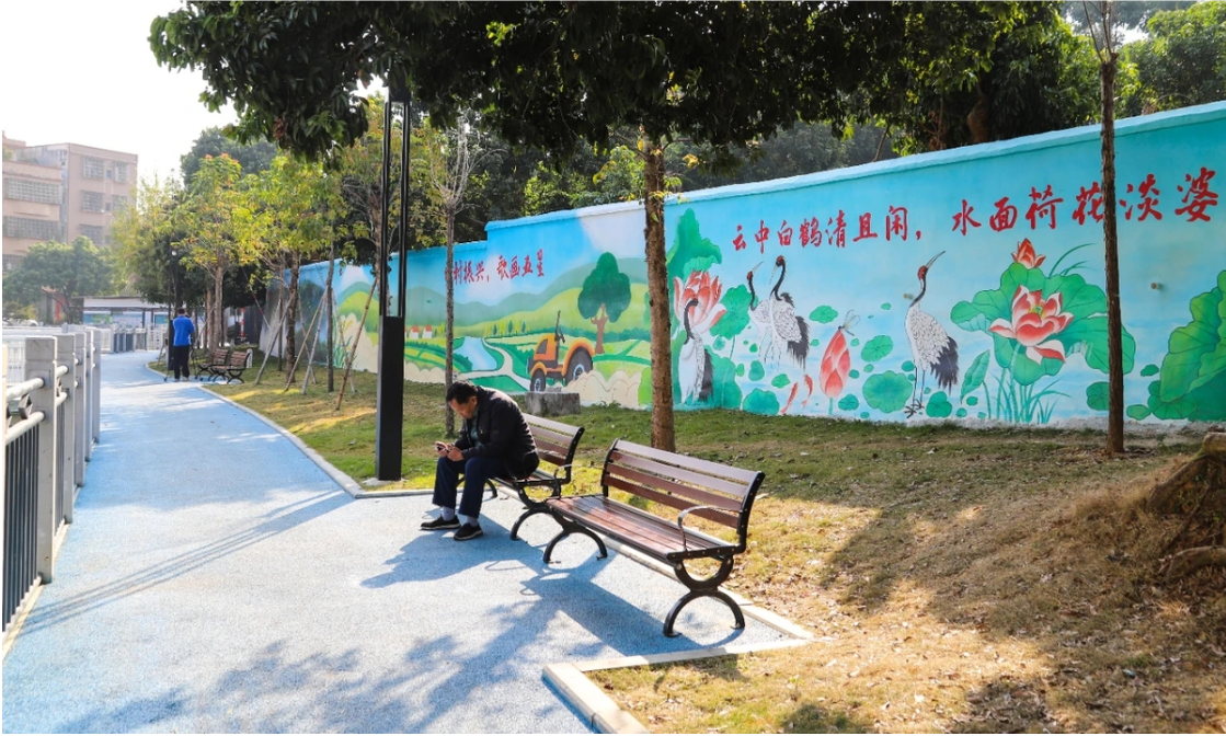 近年来,谢岗镇五星村大力推进城中村改造,因地制宜、高标准持续推进公园建设,将人居环境整治向更高标准提档升级,打造各具特色、功能实用的公共绿色空间,村容村貌实现新提升的同时,也得到了广大村民的一致好评。走进五星村上湖公园,只见公园周边色彩斑斓、富有创意的墙绘为村庄增添了一抹亮丽的风景线,装点着村民的生活环境,让村民们切实感受到环境变化带来的幸福感。据悉,五星村上湖公园占地总面积8257平方米,公园内配套建设了休憩坐凳、健身区域等,为市民群众打造了一个休闲娱乐、活动锻炼的理想空间。同时,新增建设了近40个停车位,为周边居民解决停车难问题,提供更好的城市活动空间和服务空间。