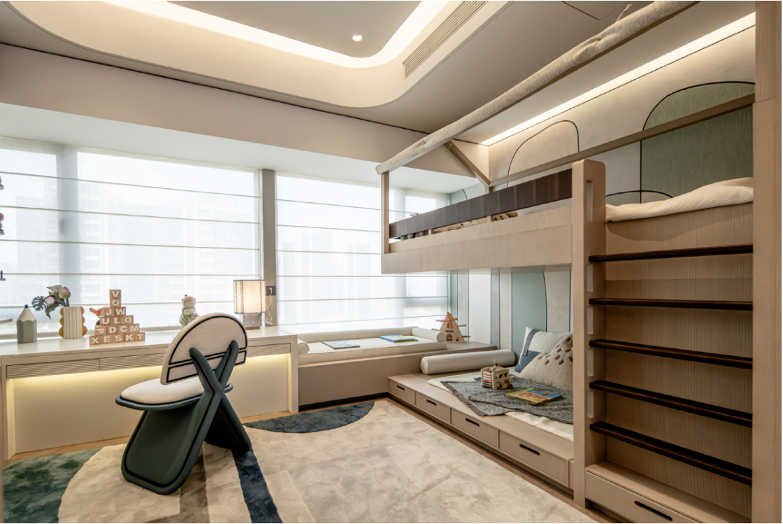 建筑图纸在沙盘上方缓缓旋转。销售总监手持激光笔划过等比例模型:"三口之家打通次卧变书房,二胎时代恢复四房格局。"模块化设计让墙体化作"空间魔方",现场工人正演示隔墙拆卸流程——螺栓嵌入的轻钢龙骨三十分钟即可重组空间。三组飘窗构成另一重惊喜:不计产权的凸窗台面延伸出合计13.5㎡的"阳光容器"。样板间里,某处飘窗被改造成星空顶儿童阅读舱,另一处摆放着茶席,晨光穿透金山湖的水汽漫过陶壶。