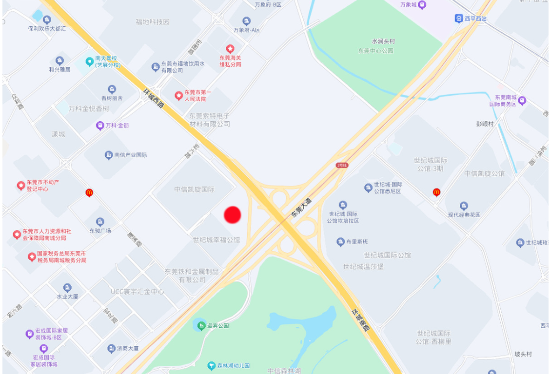 项目地理位置优越,处于世纪城幸福公馆与中信凯旋国际的交界处,周边有南城总部基地、东莞CBD以及即将开业的东莞万象城和东莞中心公园(一期已开放,二期建设中)。这一地段比许多在售的商品房项目更具优势。