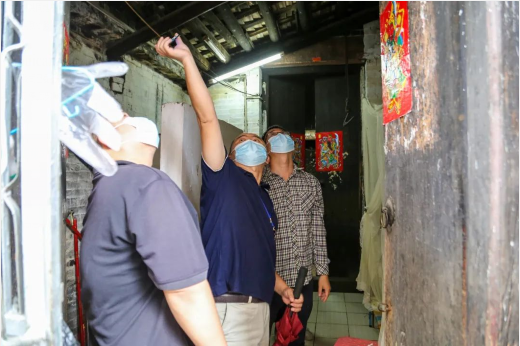 每到一个检查点,检查人员认真仔细检查建筑地基有无出现沉陷、滑移,主体结构有无私自拆改,是否存在擅自改变使用功能导致荷载增加、未按审批手续建设等其他重大安全风险隐患。