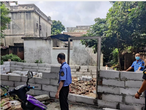 6月7日,道滘城管片长在日常巡查过程中,发现一处闲置地内有一层砖混结构的构筑物,当事人正在不紧不慢地施工。经核查,当事人在未取得任何合法土地使用相关证明的情况下擅自霸占闲置地进行违法建设,涉嫌违反《中华人民共和国城乡规划法》有关规定。城管分局立即连同属地村启动联合快速拆除机制,依法对其进行拆除,并于当天上午完成违建部分的拆除,拆除面积约40平方米。