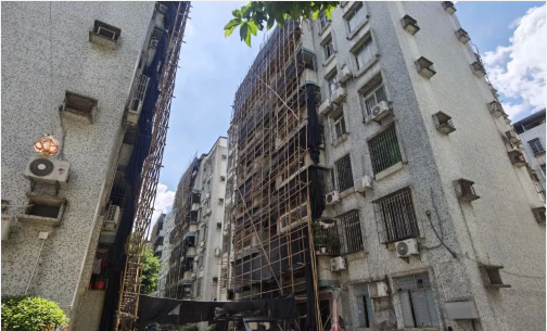 龙图花园建于1993年,原设计外墙的琉璃瓦片由于年代久远,2018年以来接连发生多次掉落,幸无造成人员伤亡。此外,小区原来的水管锈迹斑斑,严重影响水质。龙图花园作为樟木头今年改造的老旧小区之一,目前施工人员已在外墙搭好排栅,对原来的琉璃瓦外墙进行拆卸。
