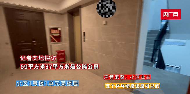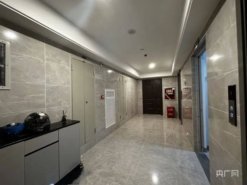 央广网记者随同王女士进入小区时看到,小区绿化较多,环境整洁,晚上楼栋内住户亮灯较少。随后记者跟王女士一同进入1号楼,乘电梯到王女士家所在的楼层查看情况。她所居住的楼层一梯两户,王女士和对门邻居家中间间隔空间较大,楼梯间和公共区域面积比较大,十分宽敞。 “我们这个小区公摊面积确实比较大,要是想打乒乓球,在楼道里放一张球桌都可以。”王女士调侃说。
