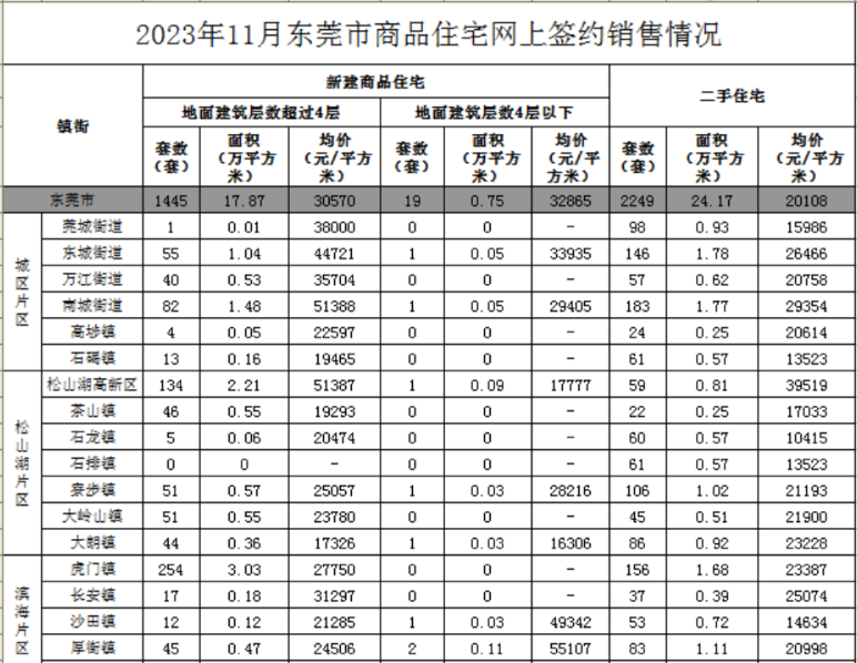 2024-01-02 10:38:16 | 房产2023年11月东莞全市新建商品住宅网签1464套 12月26日,东莞市住房和城乡建设局官网发布《2023年11月东莞市商品...