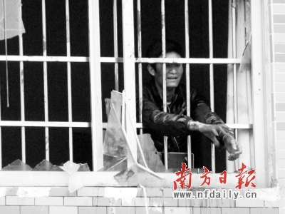 徐富金一边喊“救命”,一边徒手砸破临街窗户的玻璃,鲜血染红了他的拳头。 靳延明 摄