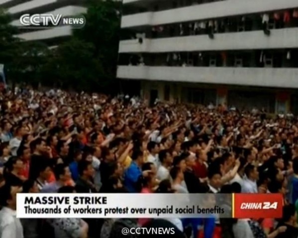 5日,广东东莞最大鞋厂—裕元鞋厂几千名员工因质疑厂方以临时工标准为工作十多年的员工购买社保,与员工签订无效劳动合同等欺瞒行为进行抗议。
