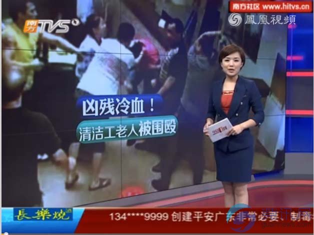 东莞3名年轻男子残忍围殴六旬清洁工