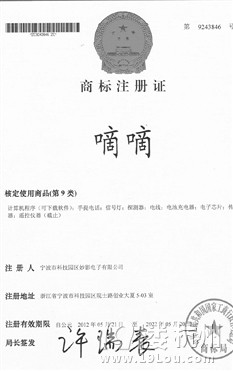 右图:“妙影电子”已经获得国家工商部门确认的“嘀嘀”商标注册证。