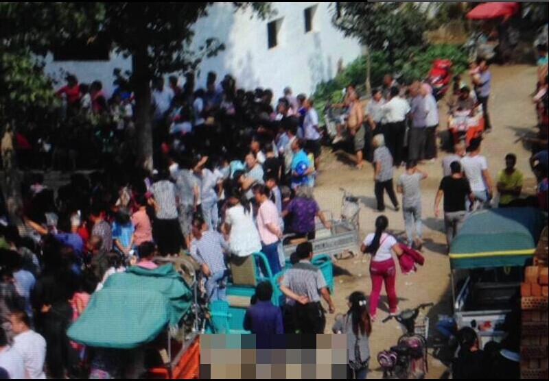 8月31日4时许,经过44小时的全力缉拿,河南省尉氏县岗李乡韩佐村“8.29”现行命案告破,杀害本村一家4口后纵火潜逃的犯罪嫌疑人师抖威(男,24岁)在周口项城市落网。8月29日上午8时许,尉氏县公安局接到报警,该县岗李乡韩佐村村民师建林32岁的妻子张某、13岁的女儿、9岁和10个月大的两个儿子共4人遇害,犯罪嫌疑人作案后纵火逃窜。师建林因在外地打工幸免于难。图为警方带嫌疑人指认现场,附近十里八乡的人前去围观。