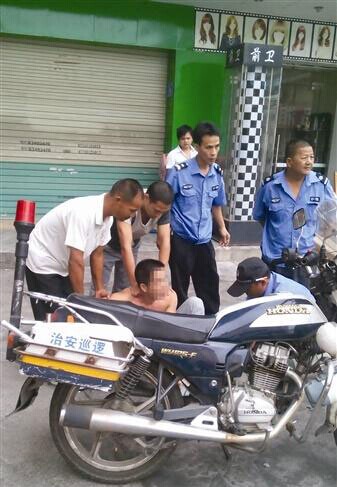 李先生在莞樟路伟易达旁一家广告公司上班。10月14日上午8时40分许,他正在单位门前路段玩,突然听到一声大叫“抓贼啊!”循声看去,只见一名光着上身的男子正拼命逃跑,后面有一名男子追赶。光着上身的男子随后跑进附近的一个小巷,一名路过的男子听到呼救声后,拦住光着上身的男子的去路,并将他摁倒在地。随后辅警赶到现场,将光着上身的男子带走。