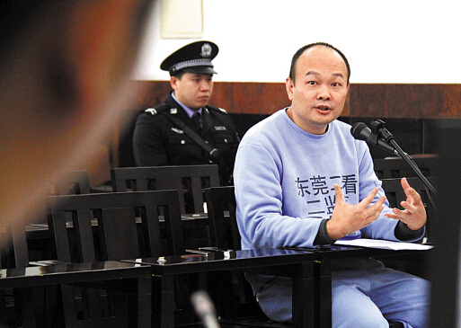 昨日上午10点,庭审在东莞牛山审判楼进行。来自东莞的人大代表、被告人家属和媒体记者参与旁听,50多个旁听席座无虚席。