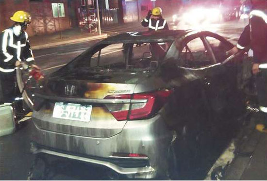 价值17万按揭本田CRV被烧得仅剩骨架