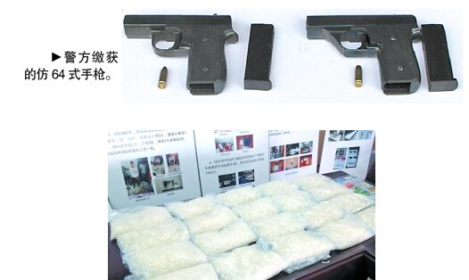 昨日,虎门警方向媒体通报:在广东省公安厅禁毒局、东莞市公安局禁毒支队等部门大力支持和现场督导下,历时近9个月,虎门警方成功侦破省公安厅督办的“03·19”贩卖毒品案,抓获嫌疑人18人,缴获了159.2公斤冰毒,500克麻古,制毒工具一批。此外,虎门警方还从两位主要犯罪嫌疑人刘某和阮某华处缴获仿64式手枪4支、子弹5发,抓获犯罪嫌疑人18人,目前此案正在进一步审理中。