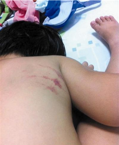 9月14日晚,3岁的女童妞妞从幼儿园回家后,保姆发现,孩子的胸前和后背有多处明显淤伤,而且再也不愿意去幼儿园了。