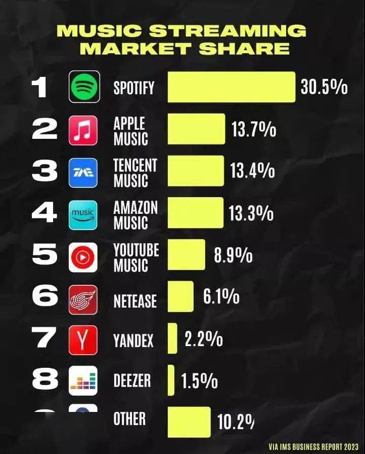 也正是订阅制和把近 70% 的收益购买版权,才造就了 Spotify 在流媒体音乐平台的霸主地位,源头活水来的持续收益+有舍才有得的大手笔投入=让平台走向成功的一种方式。