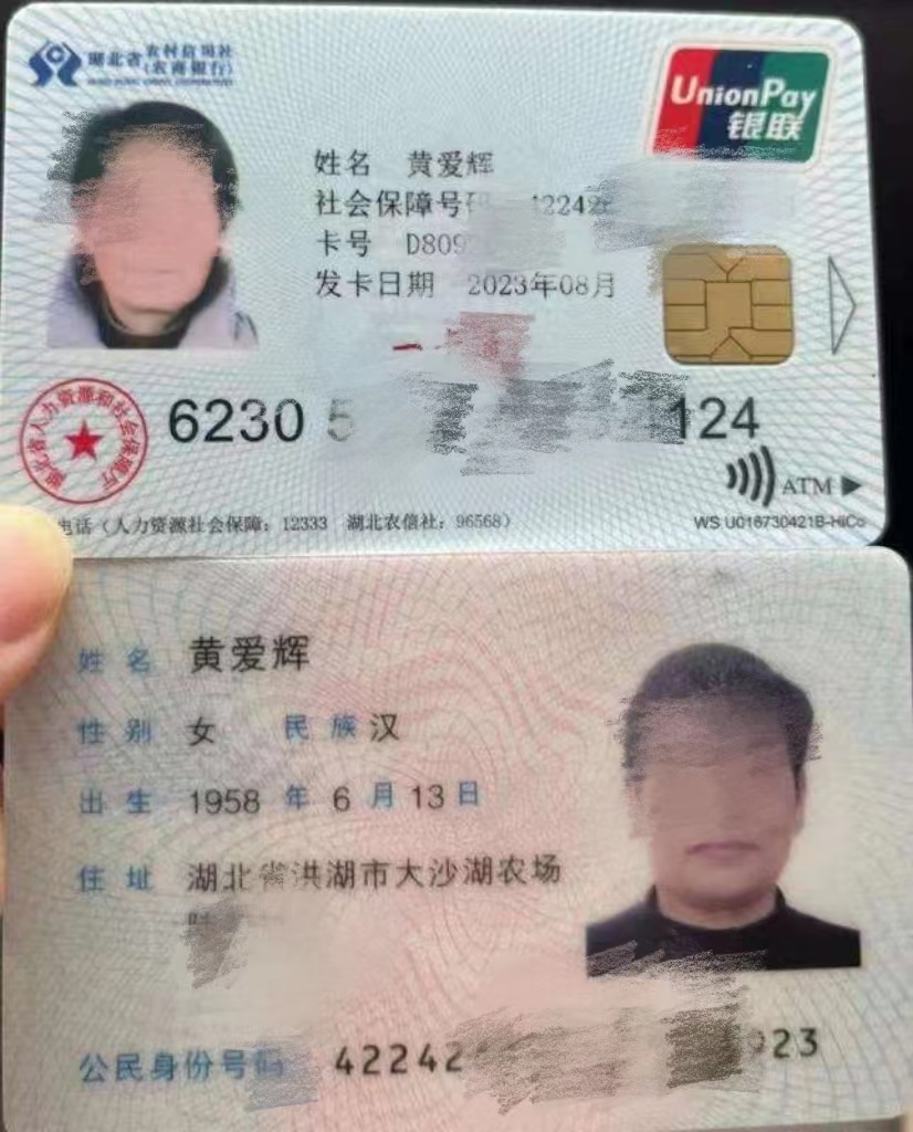 2023年8月,文新宇拿着母亲黄爱辉的身份证和退休工资领取流水单,来到大沙湖镇人社局补办社保卡,补办社保卡上的照片竟然是一名他从未见过的老太太,之后文新宇带着母亲又办了一次,才拿到“人证合一”的社保卡。“我查了社保退休金领取记录,退休金是逐年递增的,累计下来总共被冒领了20多万元。”文新宇说。