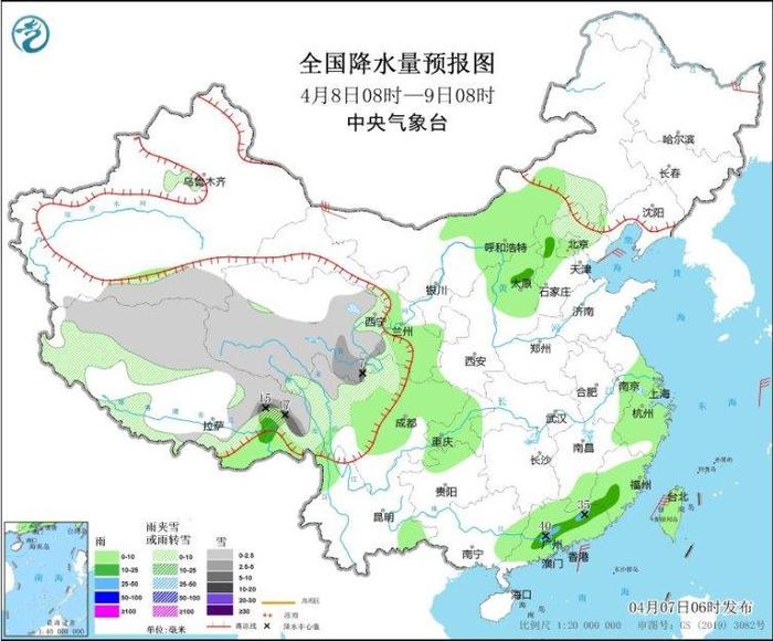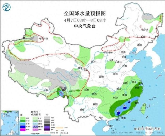 中央气象台7日早晨继续发布暴雨蓝色预警:预计7日08时至8日08时,江西东南部、福建西部和东北部、广东中北部等地部分地区有大到暴雨,广东中部等地局地有大暴雨(100~110毫米);上述部分地区伴有短时强降水(最大小时降雨量20~40毫米,局地可超过50毫米),局地有雷暴大风或冰雹等强对流天气。明天起,强降雨范围缩小,广东中部和东北部等地部分地区有大雨,福建、江西等地降雨强度明显减弱;后天,上述地区天气转好。