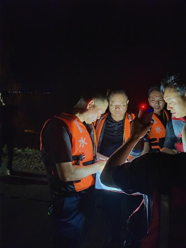 5日晚,湖南省水文中心应急监测队员在现场记录溃口流量数据。湖南省水文中心供图