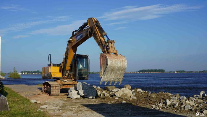 “堤上路窄,交通不便车辆运输难度大,只能排队有序地驶入决口进行投石。”6日上午9时许,熊胜强将装载17吨的石块倒入决口后,立马又开始等下一轮通知,“只要能遏制住湍急的水流,一切都是值得的!”