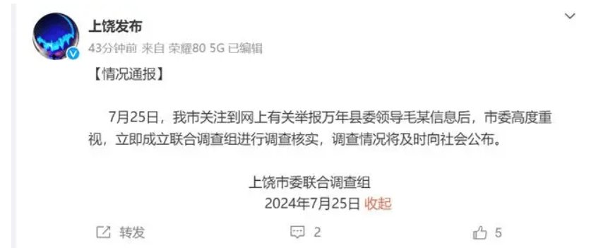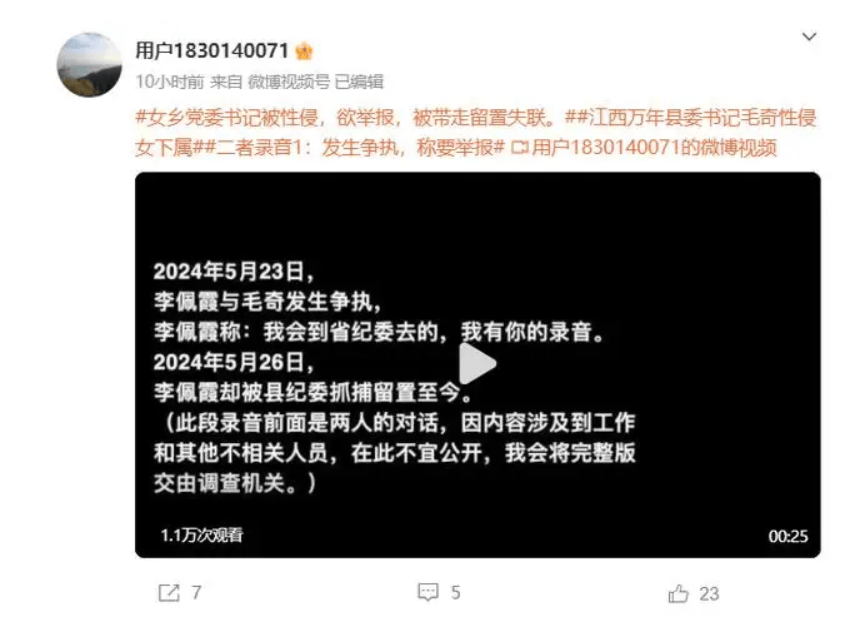 此外,在这起案件中,经查发现毛奇存在利用职权影响与李佩霞发生不正当性关系的问题。目前,对毛奇涉嫌违纪违法问题,江西省纪委监委正在审查调查中。