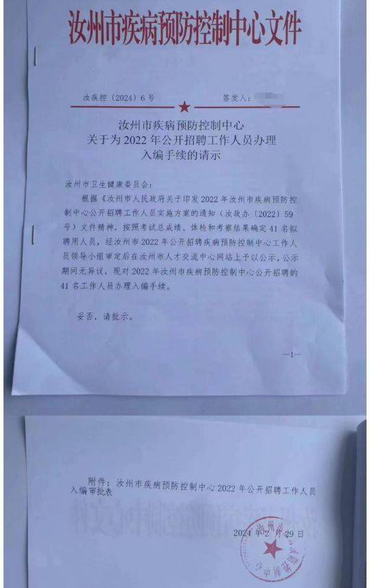 杨先生介绍,2022年8月,他们看到了该单位的招聘公告,报名参加。公告显示招50人,均为财政全额预算事业单位工作人员。由于疫情等原因,招聘进程比较缓慢。直到2024年2月,单位才对第一批拟聘用人员共41人进行了公示。