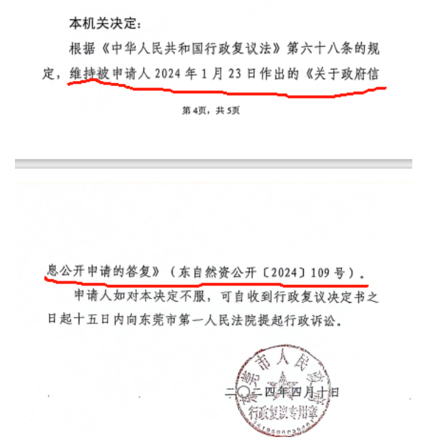 (上图是东自然资公开(2024)109号《关于政府信息公开申请的答复》)