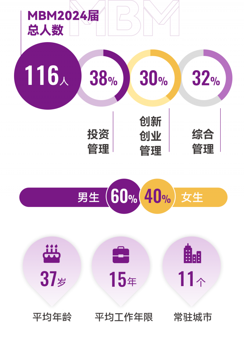 2024年,正值香港中文大学(深圳)成立之十周年之际,也是管理学理学硕士MBM成立的第五载。MBM已经汇聚了600多位杰出的学子,四届校友遍布全国16个省份、28个城市,活跃在35个不同的细分行业,其影响力广泛而深远。我们还拥有9大校友俱乐部和兴趣小组,确保每位MBM成员都能找到属于自己的归属感和共鸣。