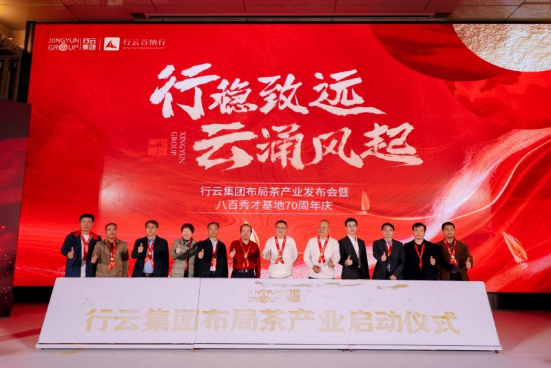 行稳致远、云起风涌,行云集团布局茶产业发布会暨八百秀才茶园基地70周年庆于2024年12月17日在深圳盛大举行,并在发布会同时行云百纳行旗下四大品牌面向全球进行招商,与更多合作伙伴共襄茶业盛举。