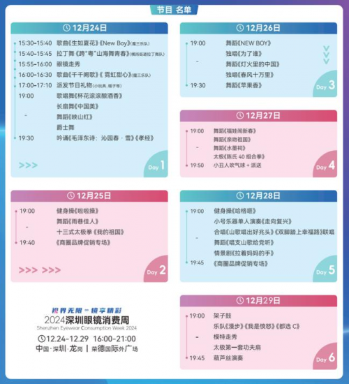 在丰富的市集活动之外,深圳眼镜消费周的舞台展示区同样亮点纷呈。从12月24日至29日,横岗街道办事处将联合魔三乐队、社区艺术团体等15家单位,共同呈现30多场不重样的节目,涵盖音乐、舞蹈、朗诵等多个艺术形式,为市民带来精彩的视觉与听觉盛宴,创造轻松玩乐氛围,提供新颖玩乐体验,让市民在家门口的美好幸福气氛里感受时尚眼镜消费与演艺观光、美食娱乐的有机融合和别样魅力。