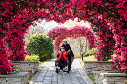 3月20日春分时节,东莞市植物园内三角梅开得热烈,香遇百花园也迎来绣球盛开。来自广东省东莞市东城敬老院的轮椅老人,在子女的陪伴下,搭乘曹操出行·礼帽专车抵达花海。参与者中年龄最长的94岁,一位银发老人与女儿在花海中合影,镜头定格在了“你伴我长大,我陪你赏花”的温馨画面。