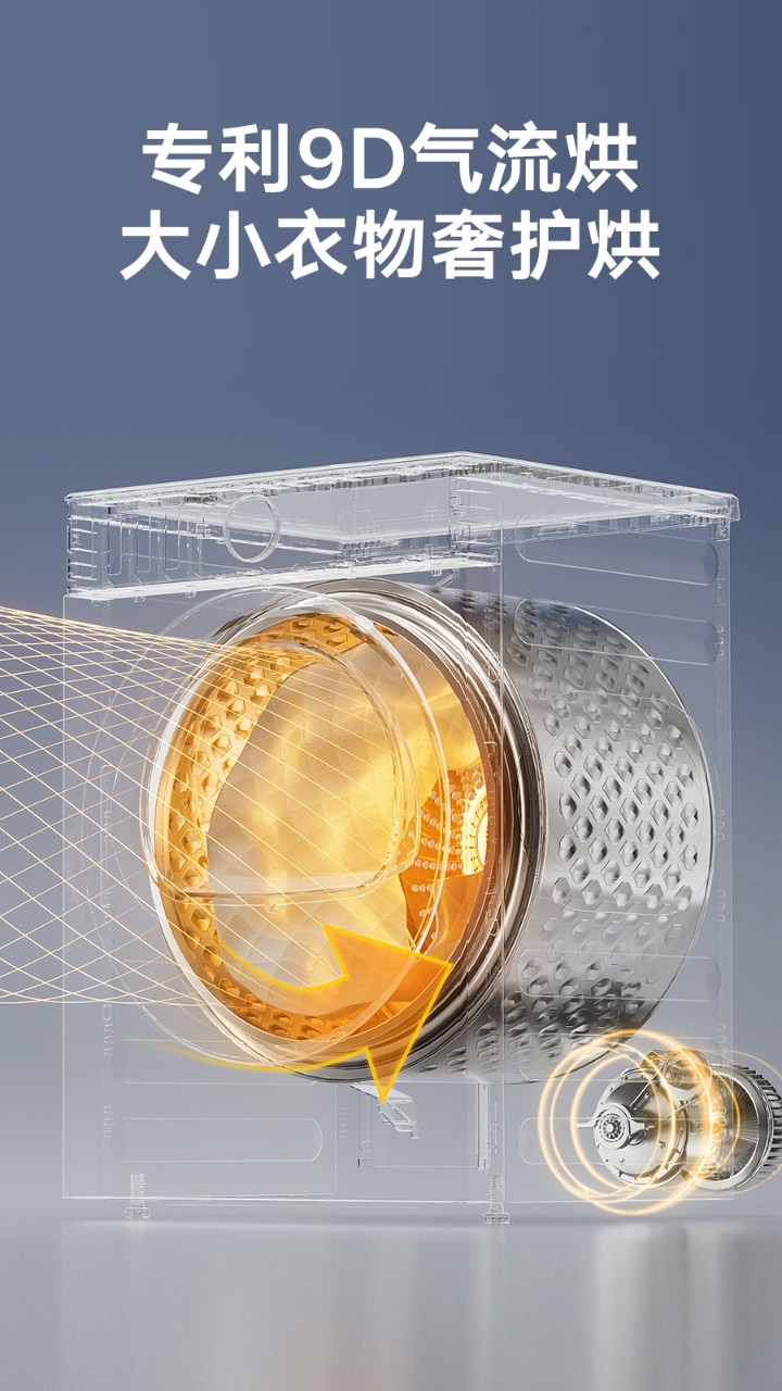 三是9D气流烘。通过对6D气流烘的进阶升级,小天鹅通过“控风、控筒”双系统和全变频技术两大核心科技,推出9D气流烘,实现3大出风方式、3大出风面积和3大气流算法,可以实现无论大件小件,均能透烘无忧。