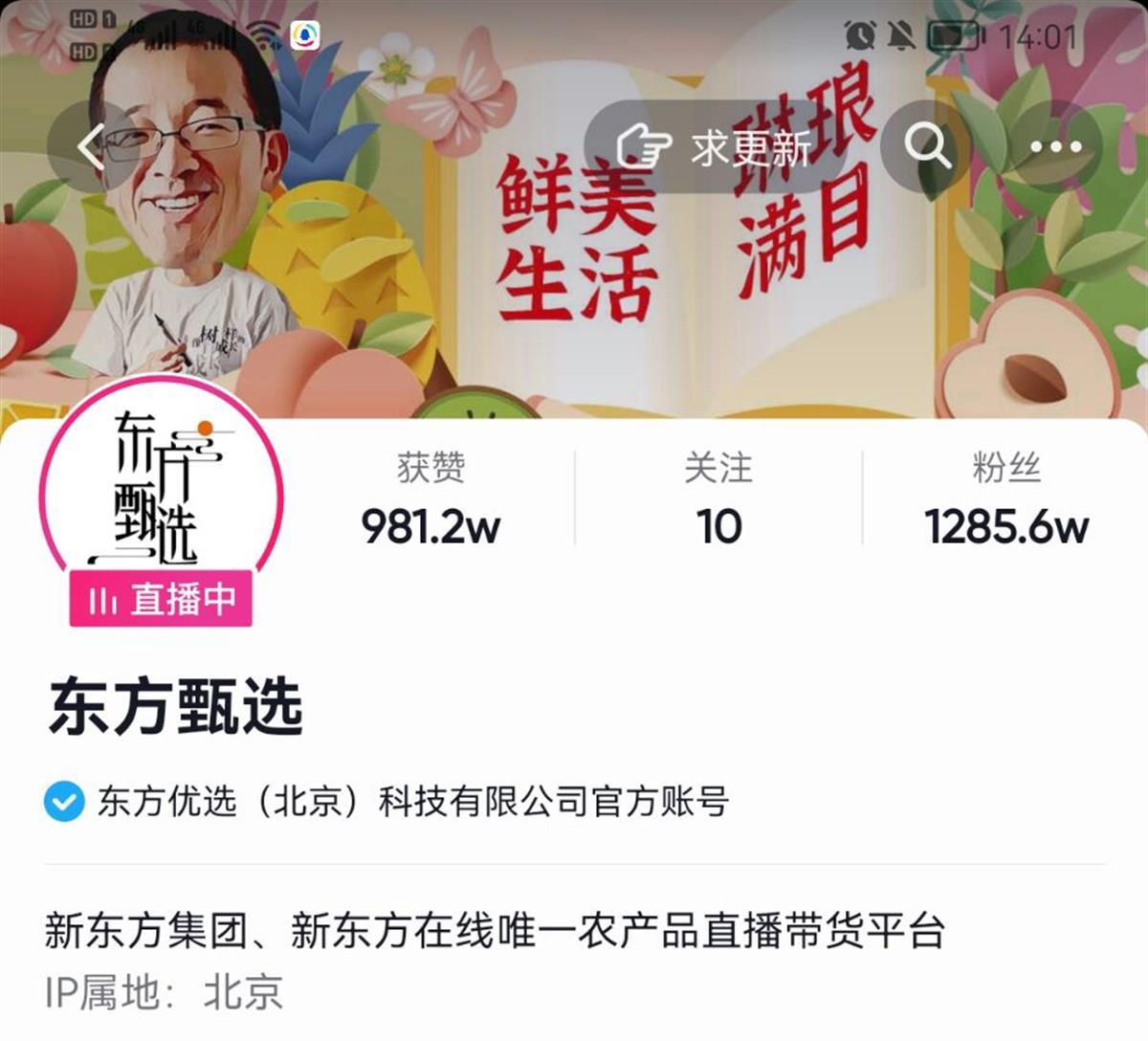 6月17日,东方甄选粉丝增长到1200多万 (图源:截图)