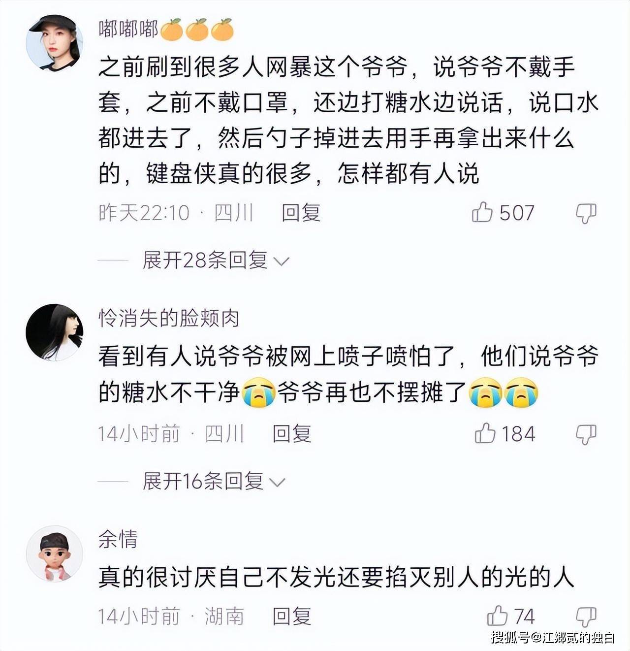 在视频中,糖水爷爷给每天等他出摊的孩子们说:“我现在不做了,大家别去找我了,我不在那摆摊了。”提起那些不好的言论,爷爷无奈地说:“你咋办呢,他图赚钱,没考虑我们可怜。”