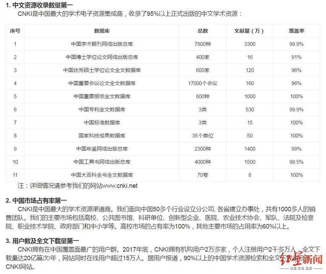 中国知网是否涉嫌垄断还有待监管部门的调查。不过,红星资本局注意到,知网在公开资料中表示,其在国内高校市场的占有率已达100%。