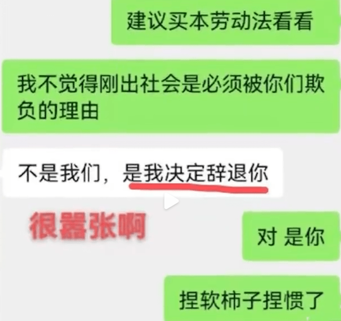 表示自己去年研究生初试后应聘了一家公司,试用期三个月且不交五险一金,之前老板曾承诺自己即将转正,自己也希望做这份工作到9月份开学。现在得知自己考上研后,公司以能力不足为由将自己辞退并移出群聊。