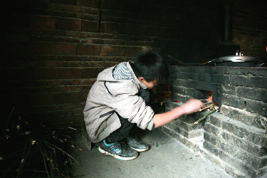 跟随小朋友回家,简陋的厨房里还用柴火煮饭。