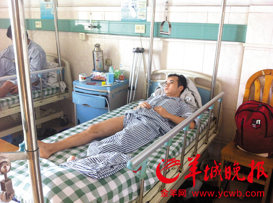 6月12日,记者在东莞石碣人民医院见到了当事人陈志平。据陈志平介绍,5月24日晚,他挣脱劫匪跑向公路拦车求助时,不幸被行驶中的一辆出租车撞伤,导致右腿粉碎性骨折。半个多月的治疗,让其花光了身上所有积蓄,其中更因无力支付医疗费而惨遭停药。