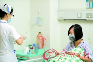 昨日医生给王云春量体温时发现她发低烧。记者卢政 摄