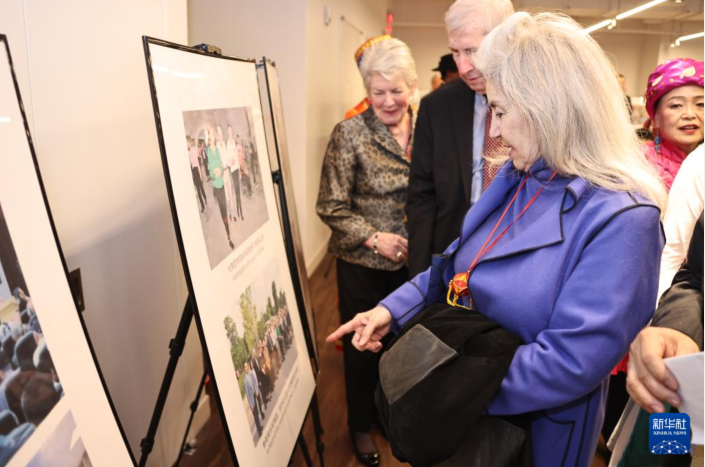 3月11日,美中关系全国委员会副会长白莉娟在美国纽约参观“中美友好在广西”图片展。