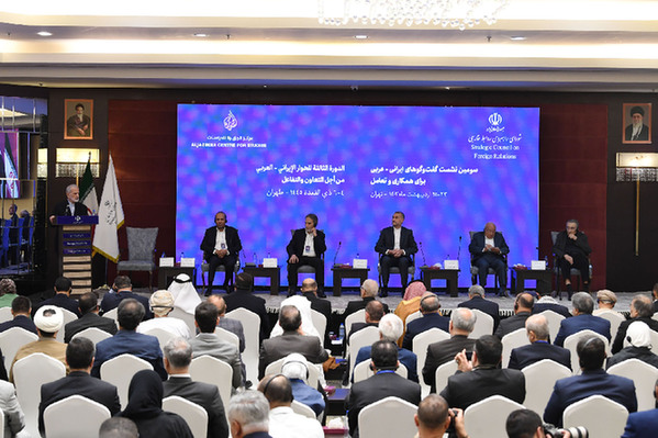 这是日前在伊朗德黑兰拍摄的第三届伊朗-阿拉伯对话会现场。伊朗外长阿卜杜拉希扬表示,一年多以来,伊朗与沙特阿拉伯在双边合作的多个发展领域都取得了成功,伊朗对此表示欢迎。(来源: 经济参考报)