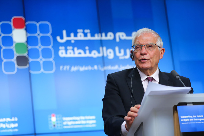 5月10日,在比利时布鲁塞尔,欧盟外交与安全政策高级代表博雷利于第六次“支持叙利亚及地区未来”布鲁塞尔会议期间举行新闻发布会。 欧盟外交与安全政策高级代表博雷利10日说,欧盟承诺将今年对叙利亚的人道主义援助增加至15亿欧元。第六次“支持叙利亚和地区未来”会议当天在布鲁塞尔召开。(来源: 经济参考报)