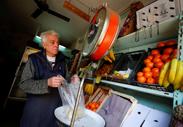 图为9月13日,在阿根廷布宜诺斯艾利斯,一名果蔬商在店里工作。 新华社/路透(来源: 经济参考报)