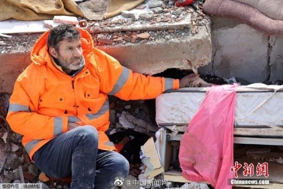 7日,在土耳其卡赫拉曼马拉什地震后倒塌的废墟上,Mesut Hancer紧握住已经遇难的15岁女儿的手,不肯离去。6日,在土耳其南部发生的两次地震。目前强震在土耳其和叙利亚造成的遇难人数已超7800人。救援黄金72小时,救援人员正与时间赛跑!